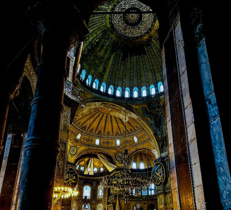 This church is so grand that, despite large construction equipment taking up much of the space, you can feel the history in the stones. When you step into the main room on the ground floor, you step backward into antiquity. The best way to describe my thoughts and feelings in the main room: it’s the feeling of being minuscule without being insignificant. You are surrounded by pillars and domes that have outlasted empires and countless generations. The angels painted in the corners look down on you from ages past; the colossal domes hang in the air over you, their gilded Arabic calligraphy shimmering in the sunlight. You’re surrounded by marble on all sides with large brass chandeliers that light the room with a yellow glow akin to torchlight. One can only imagine the acoustics in the room, the old Gregorian chants that once filled the space in the earliest years. I spent an hour and a half in awe of the space, feeling out of time and removed from the world around me. The Hagia Sophia truly fosters an atmosphere of religious awe and wonder, and I recommend everyone visit. (Give it a few months so you can enjoy it without large-scale restructuring work.)